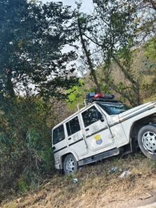 खुंडियां पुलिस की गाड़ी हुई घटनाघरस्त बाल बाल बच्चे पुलिस कर्मी
