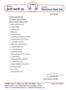 ਸ਼੍ਰੋਮਣੀ ਅਕਾਲੀ ਦਲ ਪਾਰਟੀ ਨੇ 2027 ਵਿਧਾਨ ਸਭਾ ਚੋਣਾਂ ਸਬੰਧੀ ਪਾਰਟੀ ਦਾ ਵਿਕਾਸ ਕਰਦੇ ਹੋਏ 20 ਪਾਰਟੀ ਬੁਲਾਰਿਆਂ ਅਤੇ ਟੀਵੀ ਪੈਨਲਿਸਟਾਂ ਦੀ ਇੱਕ ਵਿਆਪਕ ਸੂਚੀ ਦਾ ਐਲਾਨ ਕੀਤਾ ਹੈ।ਸੀਨੀਅਰ ਅਕਾਲੀ ਆਗੂ ਡਾ. ਦਲਜੀਤ ਸਿੰਘ ਚੀਮਾ ਨੇ ਆਪਣੇ ਸੋਸ਼ਲ ਮੀਡੀਆ ਅਕਾਊਂਟ ਰਾਹੀਂ ਜਾਣਕਾਰੀ ਦਿੰਦਿਆਂ ਦੱਸਿਆ ਕਿ ਸ਼੍ਰੋਮਣੀ ਅਕਾਲੀ ਦਲ ਦੇ ਪ੍ਰਧਾਨ, ਸੁਖਬੀਰ ਸਿੰਘ ਬਾਦਲ ਨੇ ਪਾਰਟੀ ਦੇ ਸੰਚਾਰ ਢਾਂਚੇ ਨੂੰ ਹੋਰ ਮਜ਼ਬੂਤ ਕਰਨ ਲਈ 21 ਪਾਰਟੀ ਬੁਲਾਰਿਆਂ ਅਤੇ ਟੀਵੀ ਪੈਨਲਿਸਟਾਂ ਦੀ ਇੱਕ ਵਿਆਪਕ ਸੂਚੀ ਦਾ ਐਲਾਨ ਕੀਤਾ ਹੈ।ਉਨ੍ਹਾਂ ਦੱਸਿਆ ਕਿ ਇਸ ਸੂਚੀ ਵਿੱਚ ਅਰਸ਼ਦੀਪ ਸਿੰਘ ਕਲੇਰ, ਜੋ ਮੁੱਖ ਬੁਲਾਰੇ ਵਜੋਂ ਸ਼ਾਨਦਾਰ ਸਮਰਪਣ ਅਤੇ ਸਪਸ਼ਟਤਾ ਨਾਲ ਕੰਮ ਕਰ ਰਹੇ ਹਨ, ਨਵੀਂ ਗਠਿਤ ਟੀਮ ਦੀ ਅਗਵਾਈ ਉਸੇ ਹੀ ਹੈਸੀਅਤ ਵਿੱਚ ਕਰਦੇ ਰਹਿਣਗੇ।ਉਨ੍ਹਾਂ ਦਾ ਤਜਰਬਾ ਅਤੇ ਪਾਰਟੀ ਦੇ ਦ੍ਰਿਸ਼ਟੀਕੋਣ ਦੀ ਪ੍ਰਭਾਵਸ਼ਾਲੀ ਵਿਆਖਿਆ ਟੀਮ ਨੂੰ ਮੁੱਖ ਮੁੱਦਿਆਂ ‘ਤੇ ਪਾਰਟੀ ਦੇ ਸਟੈਂਡ ਨੂੰ ਪੇਸ਼ ਕਰਨ ਵਿੱਚ ਮਾਰਗਦਰਸ਼ਨ ਕਰੇਗੀ।