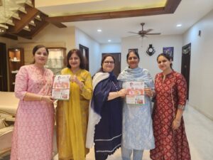 मोदी सरकार के 9 साल के कार्यकाल की उपलब्धियों की जानकारी मल्होत्रा परिवार को देते हुए राजेश कपूर,राम लुभाया कपूर,ममता कपूर,