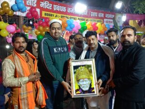 प्रताब बाग के साई बाबा मन्दिर में भव्य साई बाबा का चौंकी पर विधायक रमन अरोड़ा को सम्मानित करते संस्था के सदस्य….