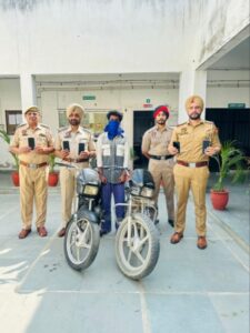 ਮੋਟਰਸਾਈਕਲ, ਮੋਬਾਈਲ ਤੇ ਹਥਿਆਰਾਂ ਸਮੇਤ ਤਿੰਨ ਕਾਬੂ
