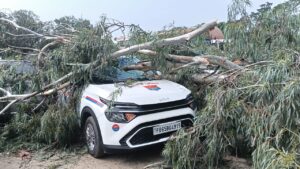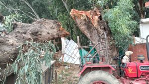 ਥਾਣਾ ਮਾਡਲ ਟਾਊਨ ਹੁਸ਼ਿਆਰਪੁਰ ਦੀ ਇਮਾਰਤ ਦੇ ਨਾਲ ਡਿੱਗੇ ਸਫੈਦੇ ਦੇ ਰੁੱਖ ਨਾਲ ਨੁਕਸਾਨੇ ਗਏ ਵਾਹਨ