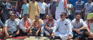 कैप्शन-भाजपा नेताओ की गिरफ्तारी के बाद धरना प्रदर्शन करते सुशील शर्मा,अशोक सरीन हिक्की,जॉर्ज सागर व अन्य