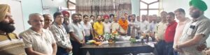 ਹੁਸ਼ਿਆਰਪੁਰ 31 ਅਗਸਤ ( ਤਰਸੇਮ ਦੀਵਾਨਾ ) ਪੰਜਾਬ ਸਰਕਾਰ ਵਲੋਂ ਪ੍ਰਿੰਸੀਪਲਾਂ ਦੀਆਂ ਬਦਲੀਆਂ ਅਤੇ ਤੈਨਾਤੀਆਂ ਕੀਤੀਆਂ ਗਈਆਂ ਹਨ।ਇਹਨਾਂ ਬਦਲੀਆਂ ਅਤੇ ਤੈਨਾਤੀਆਂ ਤਹਿਤ ਪੰਜਾਬ ਸਰਕਾਰ ਵਲੋਂ ਪ੍ਰਿੰਸੀਪਲ ਅਮਨਦੀਪ ਸ਼ਰਮਾ ਨੂੰ ਉੱਪ-ਜਿਲ੍ਹਾ ਸਿੱਖਿਆ ਅਫਸਰ (ਐਲੀਮੈਂਟਰੀ ਸਿੱਖਿਆ) ਹੁਸ਼ਿਆਰਪੁਰ ਦਾ ਚਾਰਜ ਦਿੱਤਾ ਗਿਆ।ਪ੍ਰਿੰਸੀਪਲ ਅਮਨਦੀਪ ਸ਼ਰਮਾਂ ਨੂੰ ਉਕਤ ਅਹੁਦੇ ਦਾ ਚਾਰਜ ਸੰਭਾਲਣ ਤੇ ਗੌਰਮਿੰਟ ਟੀਚਰਜ ਯੂਨੀਅਨ ਹੁਸ਼ਿਆਰਪੁਰ ਅਤੇ ਪੁਰਾਣੀ ਪੈਨਸ਼ਨ ਬਹਾਲੀ ਸੰਘਰਸ਼ ਕਮੇਟੀ ਹੁਸ਼ਿਆਰਪੁਰ ਦੀ ਟੀਮ ਵਲੋਂ ਸਨਮਾਨਿਤ ਕੀਤਾ ਗਿਆ।ਇਸ ਮੌਕੇ ਜ਼ਿਲ੍ਹਾ ਵਾਈਜ ਪ੍ਰਧਾਨ ਪ੍ਰਿੰਸ ਪਲਿਆਲ ਗੜਦੀਵਾਲਾ ਅਤੇ (ਸੀਨੀਅਰ ਆਗੂ) ਜਗਵਿੰਦਰ ਸਿੰਘ, ਦਵਿੰਦਰ ਹੁਸ਼ਿਆਰਪੁਰ, ਗੁਰਮੁੱਖ ਸਿੰਘ ਬਲਾਲਾ, ਪ੍ਰਿਤਪਾਲ ਸਿੰਘ ਚੌਟਾਲਾ, ਸੁਖਦੇਵ ਸਿੰਘ, ਗੁਰਪ੍ਰੀਤ ਸਿੰਘ। ਜਥੇਬੰਦਕ ਟੀਮ ਵਲੋਂ ਉੱਪ-ਜਿਲ੍ਹਾ ਸਿੱਖਿਆ ਅਫਸਰ (ਐਲੀਮੈਂਟਰੀ) ਅਮਨਦੀਪ ਸ਼ਰਮਾ ਨੂੰ ਇੱਕ ਯਾਦਗਾਰੀ ਚਿੰਨ੍ਹ ਦੇ ਕੇ ਸਨਮਾਨਿਤ ਕੀਤਾ ਗਿਆ।ਉਪਰੋਕਤ ਆਗੂਆਂ ਵਲੋਂ ਪ੍ਰਿੰਸੀਪਲ ਅਮਨਦੀਪ ਸ਼ਰਮਾ ਅਤੇ ਉਹਨਾ ਦੀ ਧਰਮ ਪਤਨੀ ਮੈਡਮ ਪਵਨ ਸ਼ਰਮਾ ਨੂੰ ਵਧਾਈਆਂ ਦਿੱਤੀਆਂ ਗਈਆਂ।ਇਸ ਮੌਕੇ ਆਗੂ ਚਰਨਜੀਤ ਸਿੰਘ ਹੁਸ਼ਿਆਰਪੁਰ , ਅਰਵਿੰਦ ਪਠਾਣੀਆਂ , ਕਰਨਵੀਰ ਸ਼ਰਮਾ , ਜਗਮੋਹਨ ਸਿੰਘ , ਬਲਜੀਤ ਸਿੰਘ ,ਗੁਰਪ੍ਰੀਤ ਸਿੰਘ ਲੈਕਚਰਾਰ ਲਖਵੀਰ ਸਿੰਘ, ਗੁਰਪ੍ਰੀਤ ਸਿੰਘ ਗੜਦੀਵਾਲਾਸੁਖਦੇਵ ਨਸਰਾਲਾ, ਸੰਜੀਵ ਸਿੰਘ ਆਦਮਵਾਲ,ਸੰਦੀਪ ਬਾਗਪੁਰ,ਦੀਪਕ ਸ਼ਰਮਾ,ਗੁਲਸ਼ਨ ਕੁਮਾਰ,ਨੀਰਜ,ਹਰੀਸ਼ ਪੁਰੀ, ਸਚਿਨ ਨਲੋਈਆਂ,ਮਨਪ੍ਰੀਤ ਸਿੰਘ,ਜਤਿੰਦਰ,ਹੇਮੰਤ ਮਹਿਤਾ ਮੈਡਮ ਅਮਿਤਾ ਸ਼ਰਮਾ,ਮੈਡਮ ਰਮਨਦੀਪ ਸੈਣੀ , ਦੀਪਕ ਕੌਂਡਲ, ਮਾਸਟਰ ਜਗਮੋਹਨ ਸਿੰਘ, ਹਰਪਾਲ ਸਿੰਘ, ਬਹਾਦਰ ਜਗਦੀਸ਼ ਸਿੰਘ , ਅਨਿਲ ਕੁਮਾਰ, ਨਵਤੇਜ ਸਿੰਘ, ਬਚਿੱਤਰ ਸਿੰਘ, ਚਰਨਜੀਤ ਸਿੰਘ, ਮਲਕੀਤ ਸਿੰਘ ਅਤੇ ਜਗਵਿੰਦਰ ਸਿੰਘ ਹਾਜ਼ਰ ਸਨ।