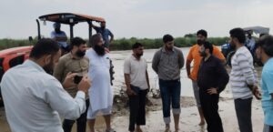 ਹੁਸ਼ਿਆਰਪੁਰ, 8 ਸਤੰਬਰ (ਤਰਸੇਮ ਦੀਵਾਨਾ)- ਪੰਜਾਬ ਵਿੱਚ ਭਾਰੀ ਵਰਖਾ ਅਤੇ ਹੜ੍ਹਾਂ ਨੂੰ ਧਿਆਨ ਵਿੱਚ ਰੱਖਦੇ ਹੋਏ ਕੈਬਨਿਟ ਮੰਤਰੀ ਪੰਜਾਬ ਡਾ ਰਵਜੋਤ ਸਿੰਘ ਨੇ ਕੰਢੀ ਦੇ ਪਿੰਡ ਚੱਕ ਗੁਜਰਾਂ ਨੇੜੇ ਪੈਂਦੇ ਮਹਿੰਗਰੋਵਾਲ ਚੋਅ ਦੇ ਦੁਆਲੇ ਲਗਾਏ ਗਏ ਧੁੱਸੀ ਬੰਨ ਦਾ ਦੌਰਾ ਕੀਤਾ। ਇਸ ਮੌਕੇ ਅਵਤਾਰ ਸਿੰਘ ਭੀਖੋਵਾਲ ਦੀ ਅਗਵਾਈ ਵਿੱਚ ਇਲਾਕੇ ਦੇ ਕਿਸਾਨਾਂ ਨੇ ਮਹਿੰਗਰੋਵਾਲ ਵਲੋਂ ਆ ਰਹੇ ਚੋਅ ਦੁਆਲੇ਼ ਲਗਾਏ ਗਏ ਧੁੱਸੀ ਬੰਨ੍ਹ ਜਿੱਥੇ ਵੀ ਕੋਈ ਕਮੀ ਸੀ, ਉਸ ਬਾਰੇ ਕੈਬਨਿਟ ਮੰਤਰੀ ਡਾ ਰਵਜੋਤ ਸਿੰਘ ਨੂੰ ਜਾਣੂ ਕਰਵਾਇਆ। ਇਸ ਮੌਕੇ ਅਵਤਾਰ ਸਿੰਘ ਭੀਖੋਵਾਲ ਨੇ ਦੱਸਿਆ ਕਿ ਪਿੰਡ ਚੱਕ ਗੁੱਜਰਾਂ ਨੇੜੇ ਪੈਂਦੇ ਮਹਿੰਗਰੋਵਾਲ ਚੋਅ ਦੁਆਲੇ ਲਗਾਏ ਗਏ ਧੁੱਸੀ ਬੰਨ੍ਹ ਵਿੱਚ ਜਿਆਦਾ ਵਰਖਾ ਹੋਣ ਦੀ ਸਥਿਤੀ ਵਿੱਚ ਖੋਰ ਪੈ ਜਾਂਦੀ ਹੈ, ਜਿਸ ਕਾਰਨ ਬੰਨ੍ਹ ਕਮਜ਼ੋਰ ਹੋਣ ਕਰਕੇ ਟੁੱਟ ਜਾਂਦਾ ਹੈ ਅਤੇ ਬੰਨ ਦੇ ਦੱਖਣ ਦਿਸ਼ਾ ਵੱਲ ਪੈਂਦੀ ਜ਼ਮੀਨ ਅਤੇ ਆਬਾਦੀ ਵਾਲੀ ਘਰਾਂ ਵਿੱਚ ਪਾਣੀ ਭਰ ਜਾਂਦਾ ਹੈ, ਜਿਸ ਕਾਰਨ ਇਸ ਇਲਾਕੇ ਦਾ ਬਹੁਤ ਨੁਕਸਾਨ ਹੋ ਜਾਂਦਾ ਹੈ। ਇਸ ਮੌਕੇ ਡਾ ਰਵਜੋਤ ਸਿੰਘ ਨੇ ਤੁਰੰਤ ਮਸ਼ੀਨ ਲਗਵਾ ਦਿੱਤੀ ਅਤੇ ਆਪਣੀ ਟੀਮ ਨਾਲ ਅਤੇ ਡਰੇਨ ਮਹਿਕਮੇ ਦੇ ਕਰਮਚਾਰੀਆਂ ਅਤੇ ਅਧਿਕਾਰੀਆਂ ਨਾਲ ਟਰੈਕਟਰ ਤੇ ਬੈਠ ਕੇ ਮਹਿੰਗਰੋਵਾਲ ਚੋਅ ਦਾ ਲਗਪਗ ਤਿੰਨ ਘੰਟੇ ਬਹੁਤ ਹੀ ਬਾਰੀਕੀ ਨਾਲ ਦੌਰਾ ਕੀਤਾ ਅਤੇ ਡਰੇਨ ਮਹਿਕਮੇ ਨੂੰ ਤੁਰੰਤ ਕਾਰਵਾਈ ਕਰਨ ਦੇ ਨਿਰਦੇਸ਼ ਜਾਰੀ ਕੀਤੇ। ਇਸ ਮੌਕੇ ਕੈਬਨਿਟ ਮੰਤਰੀ ਡਾ ਰਵਜੋਤ ਸਿੰਘ ਨੇ ਇਲਾਕਾ ਨਿਵਾਸੀਆਂ ਨੂੰ ਸੰਬੋਧਨ ਕਰਦੇ ਹੋਏ ਦੱਸਿਆ ਕਿ ਮੁੱਖ ਮੰਤਰੀ ਪੰਜਾਬ ਭਗਵੰਤ ਸਿੰਘ ਮਾਨ ਦੇ ਦਿਸ਼ਾ ਨਿਰਦੇਸ਼ਾਂ ਅਨੁਸਾਰ ਹਲਕੇ ਸਾਰੇ ਦੇ ਪਿੰਡਾਂ ਤੇ ਚੁਕੰਨੀ ਨਜ਼ਰ ਰੱਖੀ ਜਾ ਰਹੀ ਹੈ ਅਤੇ ਹਲਕੇ ਦੇ ਲੋਕਾਂ ਨੂੰ ਕੋਈ ਸਮੱਸਿਆ ਨਹੀਂ ਆਉਣ ਦਿੱਤੀ ਜਾਵੇਗੀ। ਇਸ ਮੌਕੇ ਅਵਤਾਰ ਸਿੰਘ ਭੀਖੋਵਾਲ, ਬਲਜੀਤ ਸਿੰਘ, ਭੀਖੋਵਾਲ, ਰੋਹਿਤ ਦੱਤ ਪੰਚ ਭੀਖੋਵਾਲ, ਜਸਵੀਰ ਸਿੰਘ ਪੰਚ ਭੀਖੋਵਾਲ, ਅਮਨ ਸੈਣੀ ਸਰਪੰਚ ਬਸੀ ਉਮਰ ਖਾਂ, ਸੁਖਵਿੰਦਰ ਸਿੰਘ ਖੁੰਡੇ, ਸਿਟੀ ਪ੍ਰਧਾਨ ਮੁਕੇਸ਼ ਡਡਵਾਲ ਹਰਿਆਣਾ, ਸਤਵਿੰਦਰ ਸਿੰਘ ਸਰਪੰਚ ਖੁੰਡੇ, ਲਸ਼ਕਰ ਸਿੰਘ, ਸੁਰਿੰਦਰ ਪਾਲ ਸਿੰਘ ਸਰਪੰਚ ਕੁੱਲੀਆਂ, ਪ੍ਰੇਮ ਚੰਦ ਸਰਪੰਚ ਭੀਖੋਵਾਲ ਆਦਿ ਤੋਂ ਇਲਾਵਾ ਵੱਡੀ ਗਿਣਤੀ ਵਿੱਚ ਇਲਾਕਾ ਨਿਵਾਸੀ ਹਾਜ਼ਰ ਸਨ।