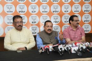 ਫੋਟੋ ਕੈਪਸ਼ਨ : ਪੱਤਰਕਾਰਾਂ ਨਾਲ ਗੱਲਬਾਤ ਕਰਦੇ ਹੋਏ ਕੇਂਦਰੀ ਰਾਜ ਮੰਤਰੀ ਜਤਿੰਦਰ ਸਿੰਘ ਨਾਲ ਭਾਜਪਾ ਦੇ ਸੂਬਾ ਮੀਡੀਆ ਇੰਚਾਰਜ ਜਨਾਰਦਨ ਸ਼ਰਮਾ ਅਤੇ ਸੂਬਾ ਬੁਲਾਰੇ ਅਨਿਲ ਸਰੀਨ।