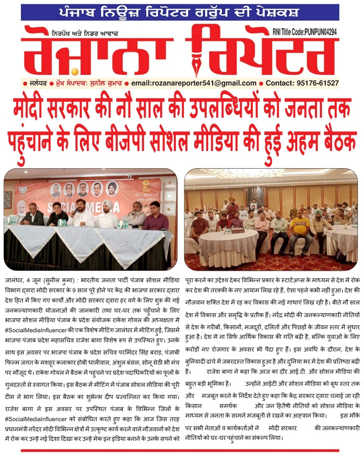 ਮੋਦੀ ਦੀ ਅਗਵਾਈ ਹੇਠਲੀ ਕੇਂਦਰ ਸਰਕਾਰ ਦੀਆਂ 9 ਸਾਲਾਂ ਦੀਆਂ ਪ੍ਰਾਪਤੀਆਂ ਬਾਰੇ ਕੇਂਦਰੀ ਮੰਤਰੀ ਬੀ.ਐਲ.ਵਰਮਾ ਨੇ ਮੀਡੀਆ ਨੂੰ ਕਰਵਾਇਆ ਜਾਣੂ।
